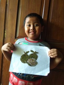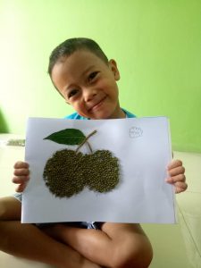 Kegiatan Praktek Kolase Menggunakan Bahan Alam Biji-Bijian