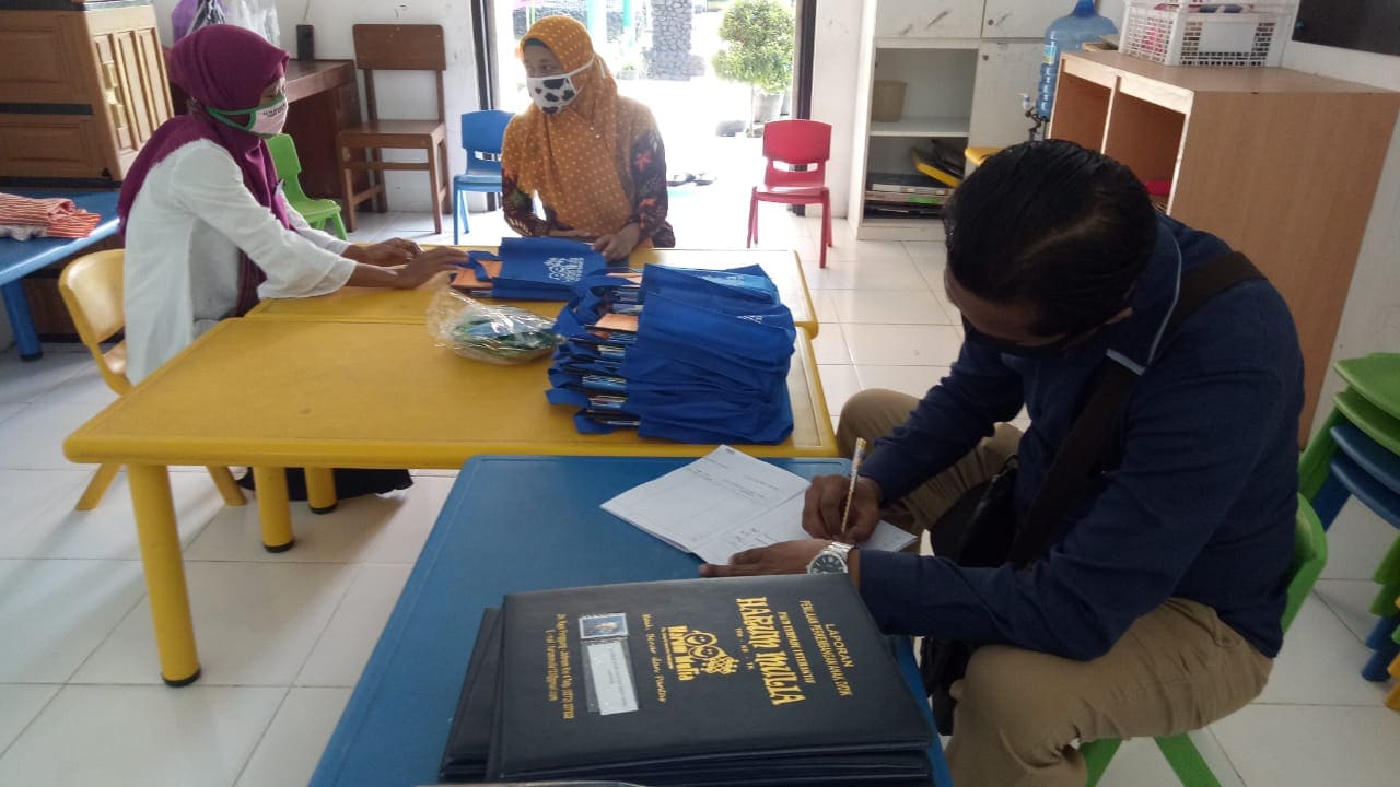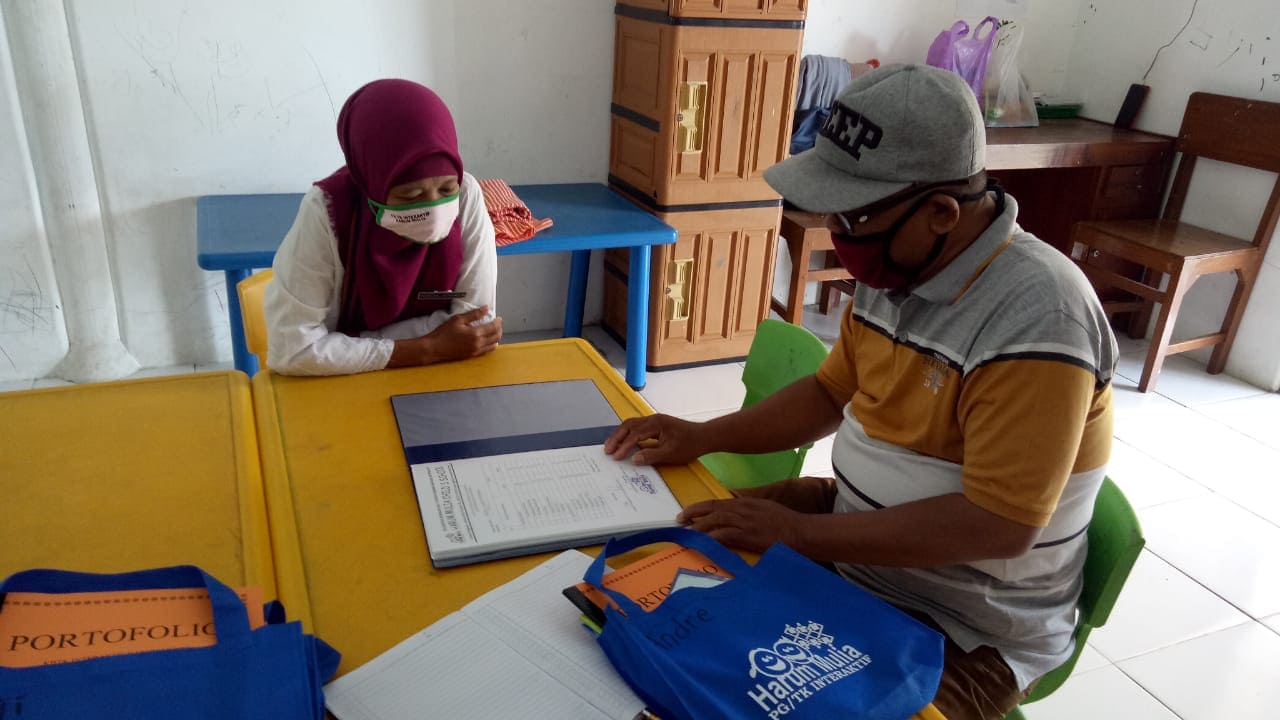 Rabu (17/6/20) Penerimaan laporan evaluasi pembelajaran KB, TK dan TPA Interaktif Harum Mulia sesuai dengan protokol kesehatan Covid-19.