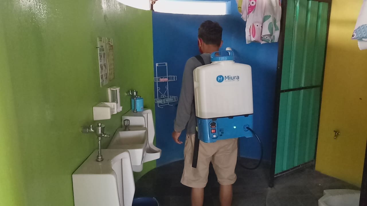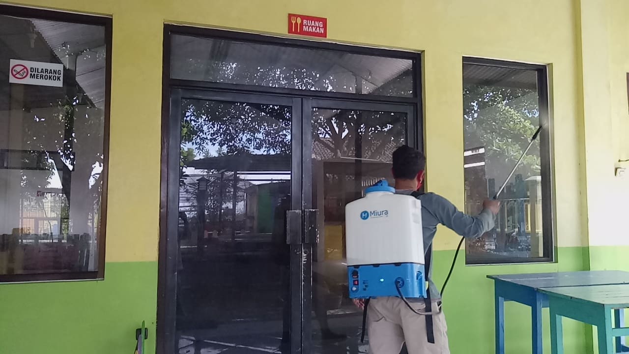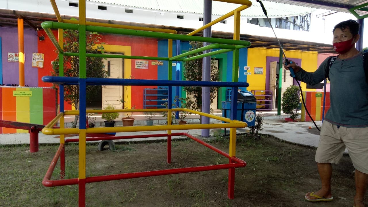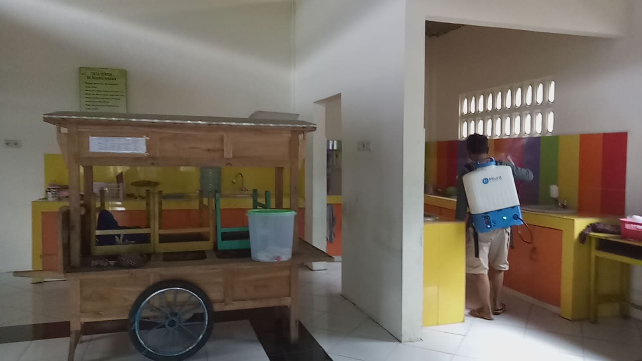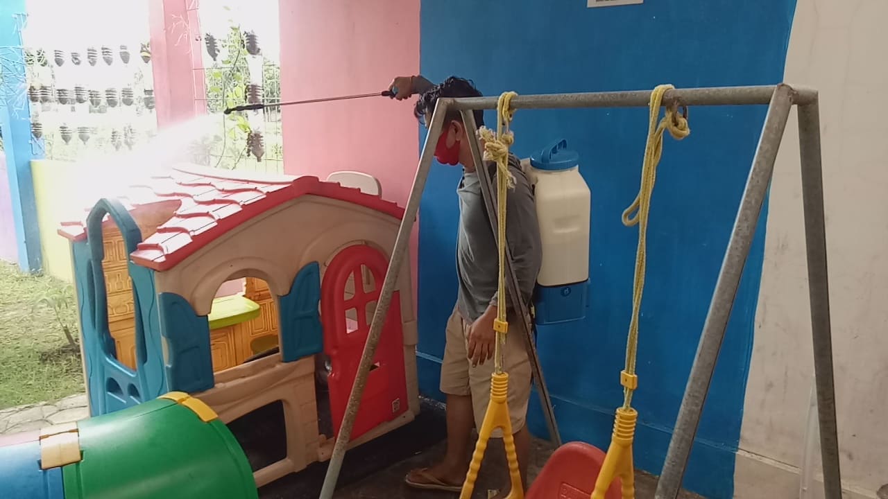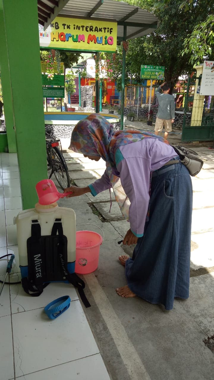 Kamis (09/07/20) Penyemprotan disinfektan di area sekolah KBTK Interaktif Harum Mulia.