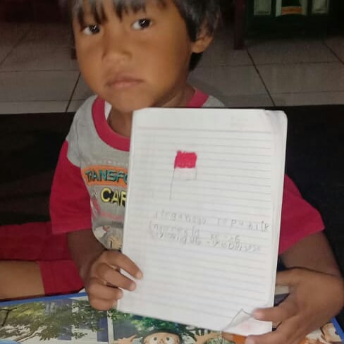 Kegiatan Daring Murid TK Membuat Ucapan HUT Republik Indonesia ke-75