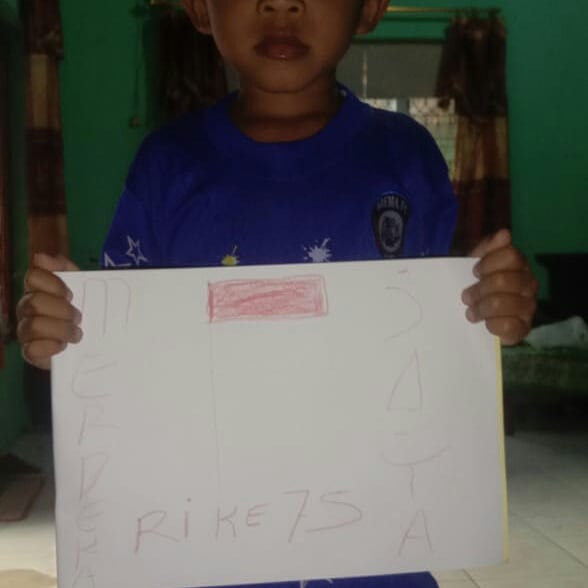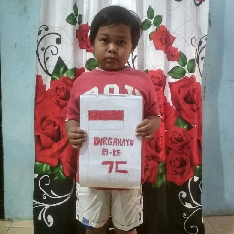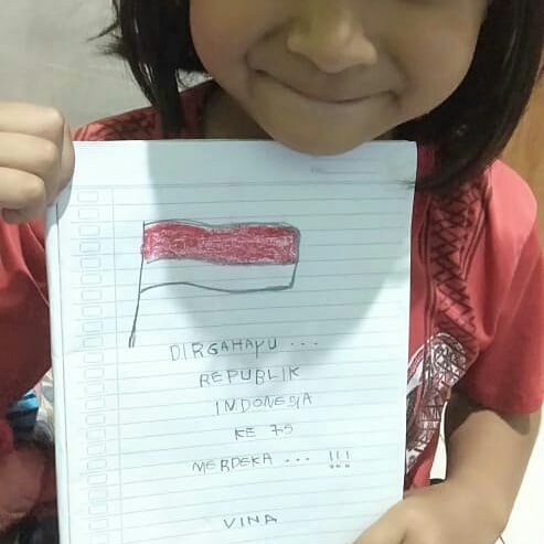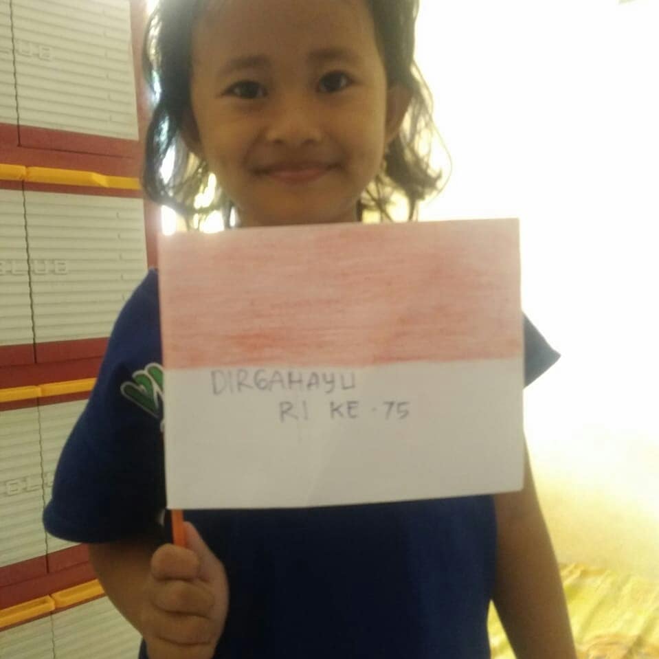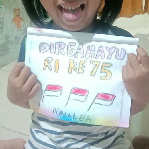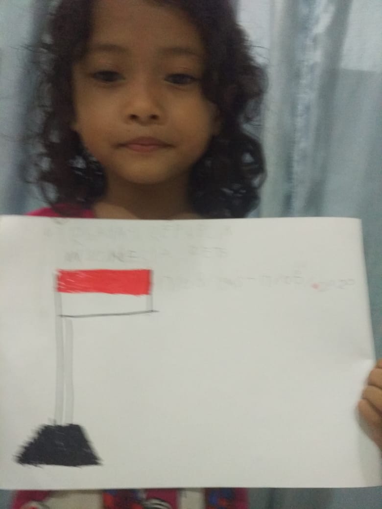 Rabu (19/8/20) Kegiatan daring murid TK Interaktif Harum Mulia hari ini adalah membuat ucapan HUT Republik Indonesia ke-75.