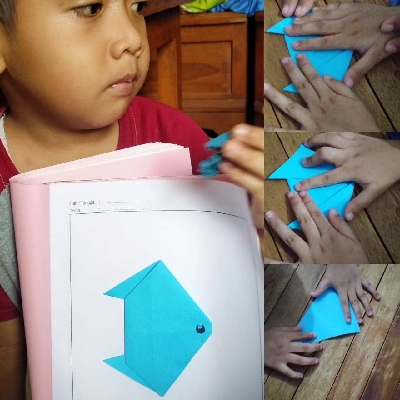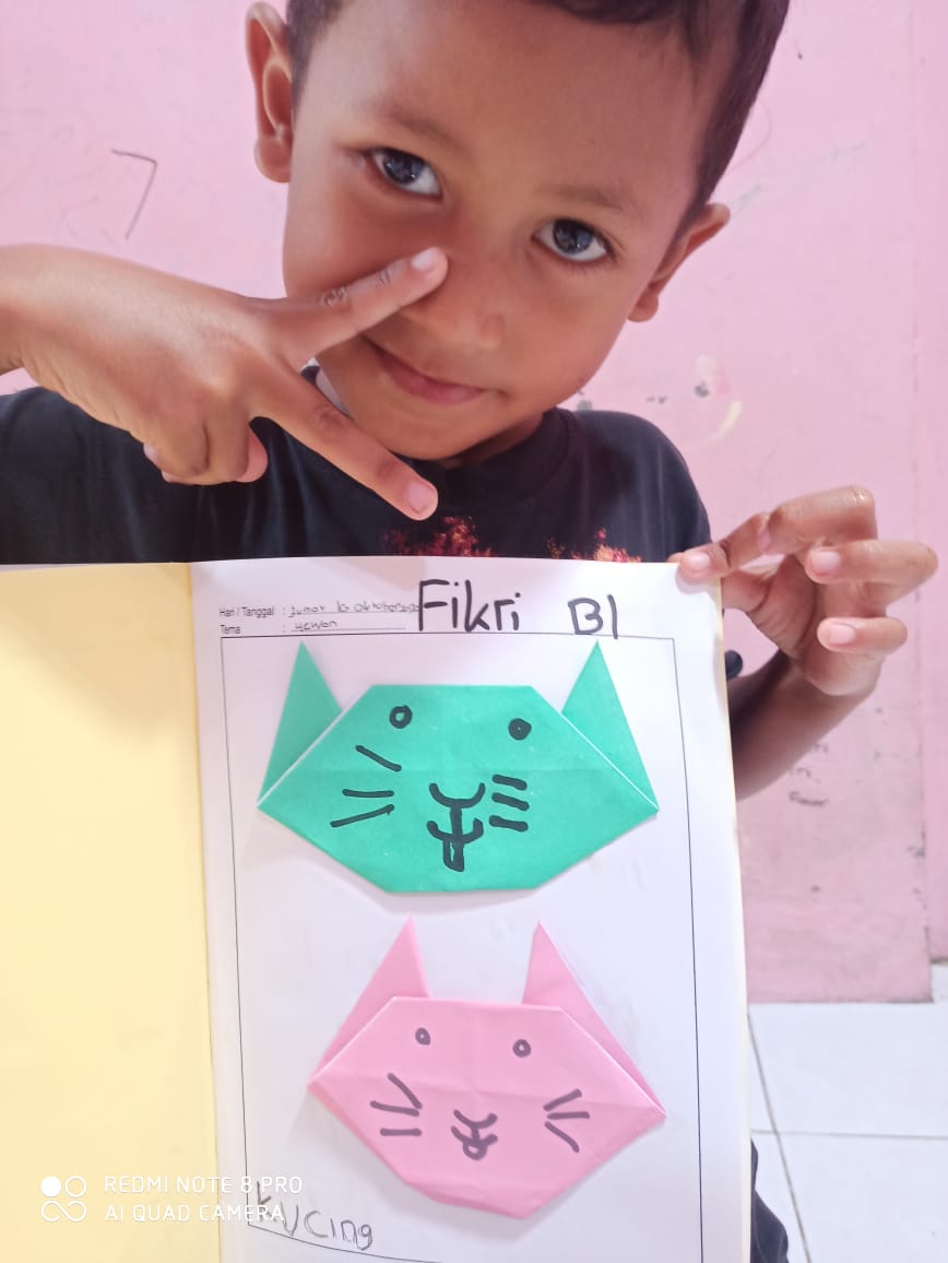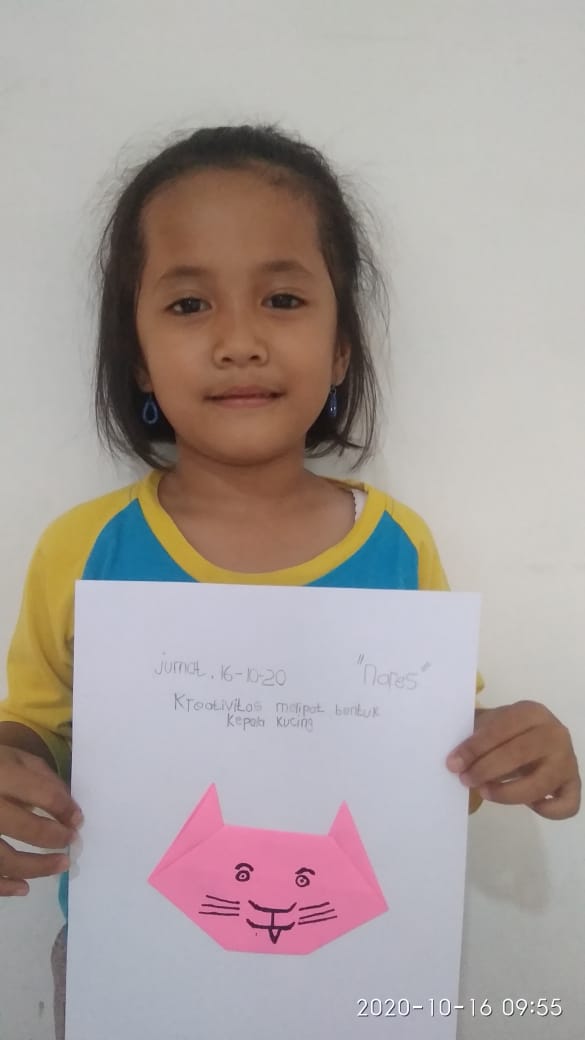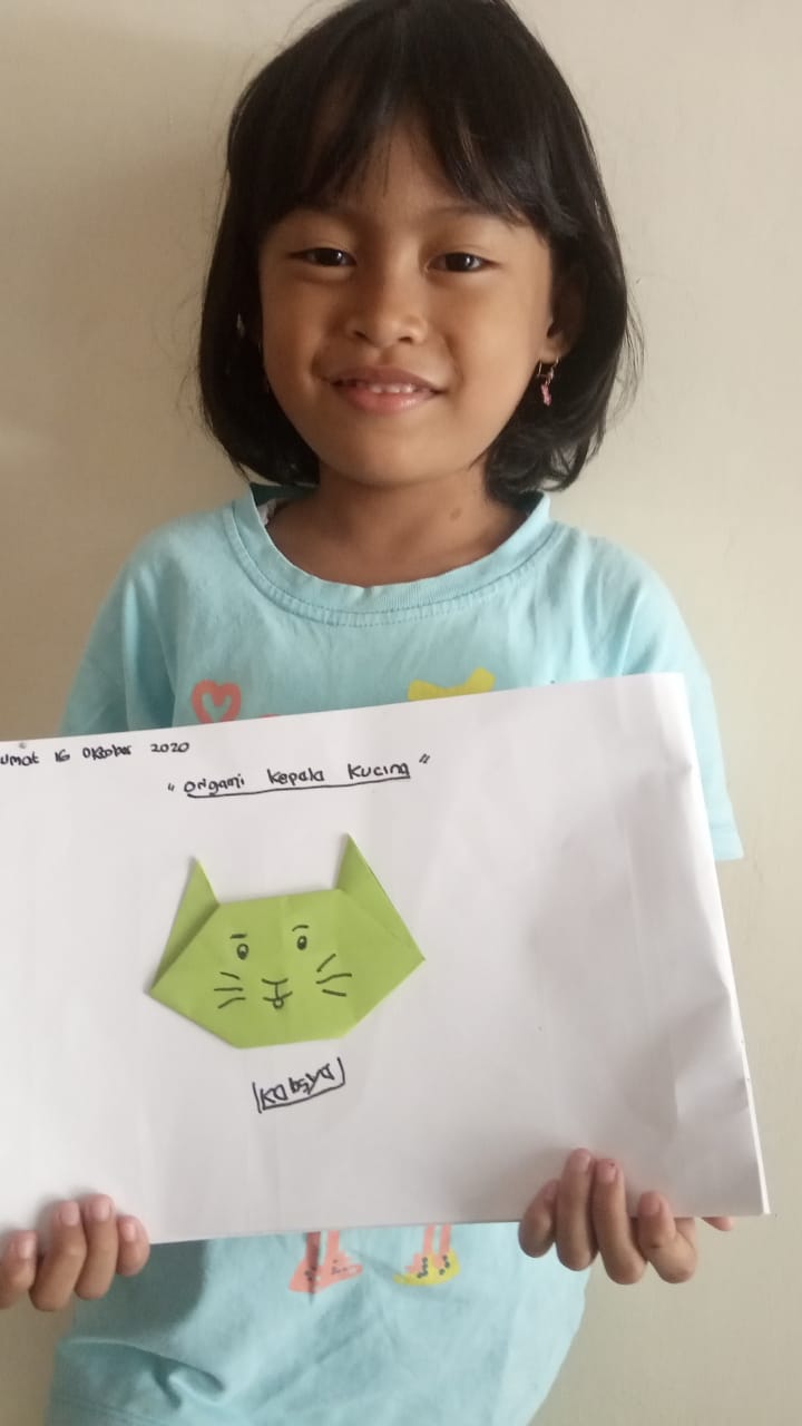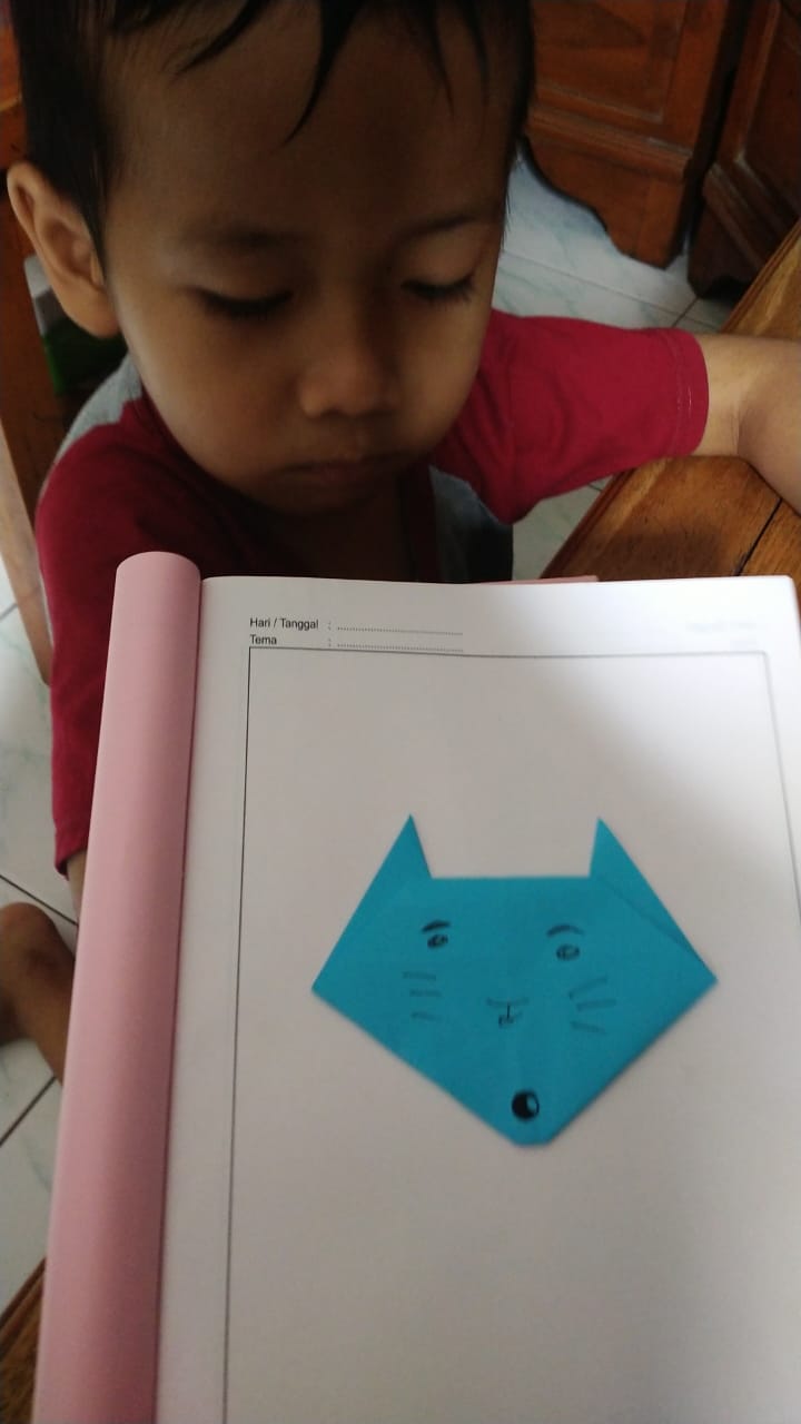 Jumat (16/10/20) Pembelajaran daring melipat kertas menjadi bentuk kepala kucing.