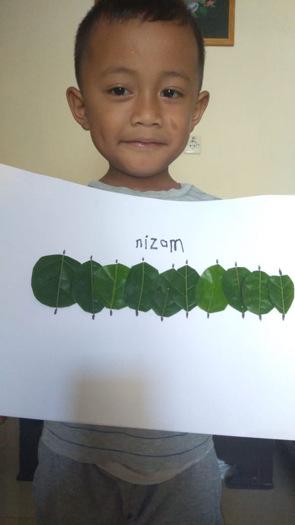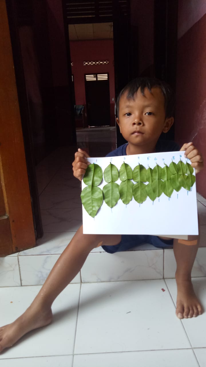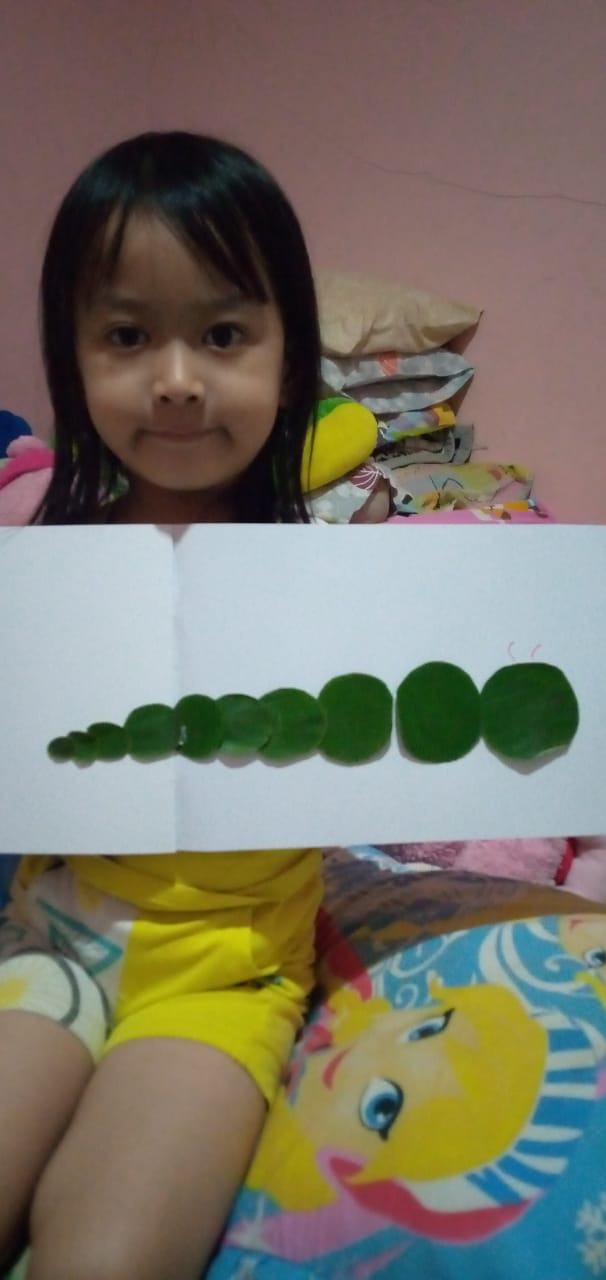 Jumat (16/10/20) Kegiatan menempel dan mengurutkan bentuk daun dari kecil ke besar dan sebaliknya.