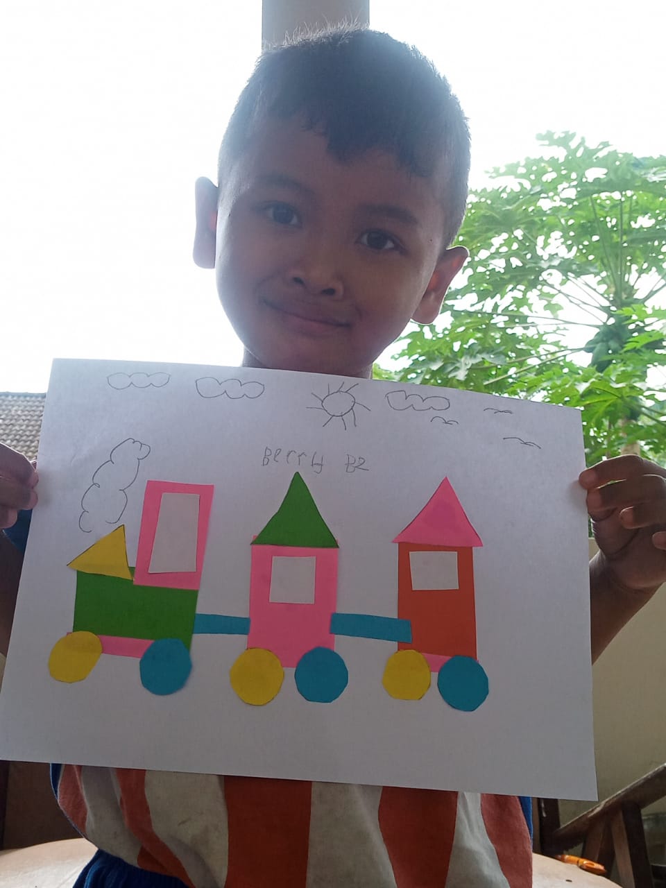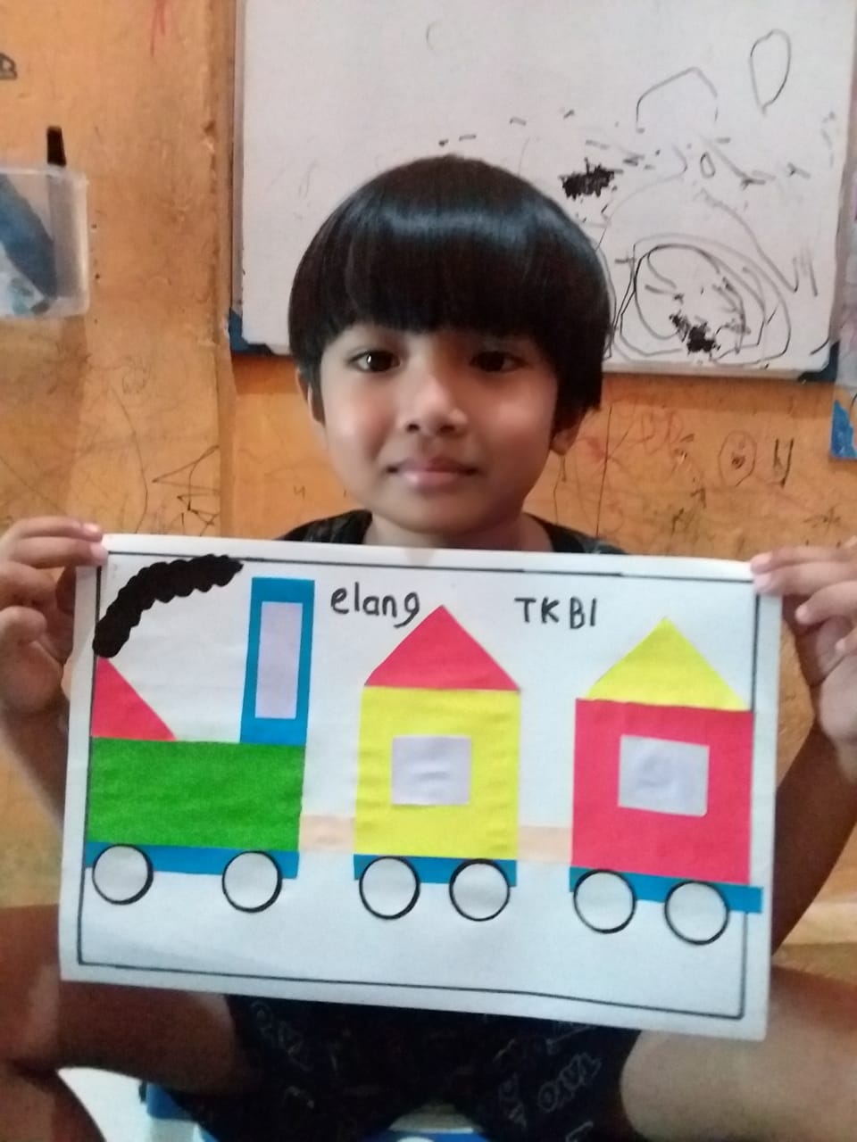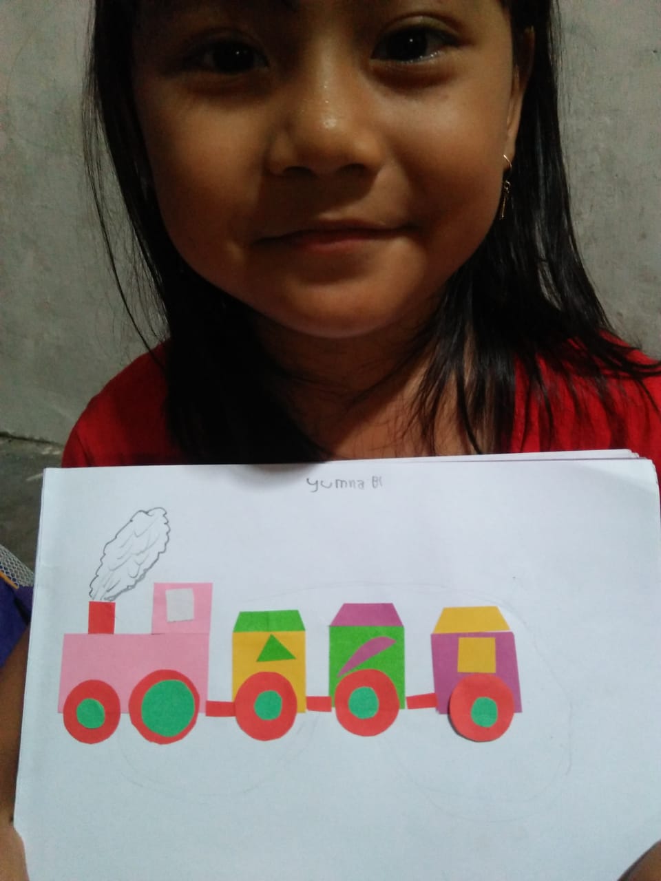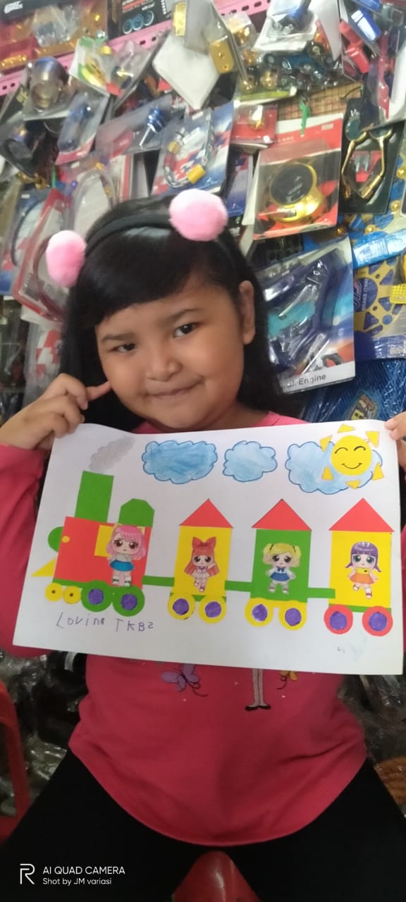 Menempel dan menggunting bentuk geometri bentuk kereta api TK interaktif harum mulia.