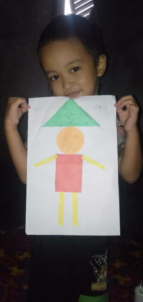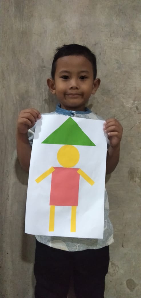 Jumat, 19 Februari 2021 Kreativitas menempel bentuk geometri menjadi petani TK Interaktif Harum Mulia.