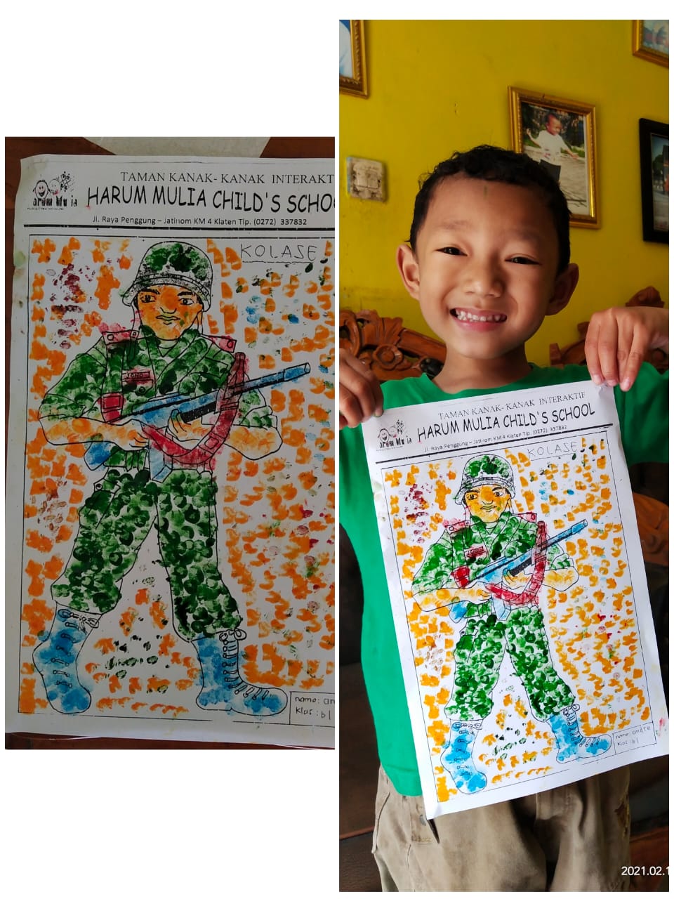 Sabtu, (20/2/21) Kreativitas finger painting oleh murid TK Interaktif Harum Mulia.