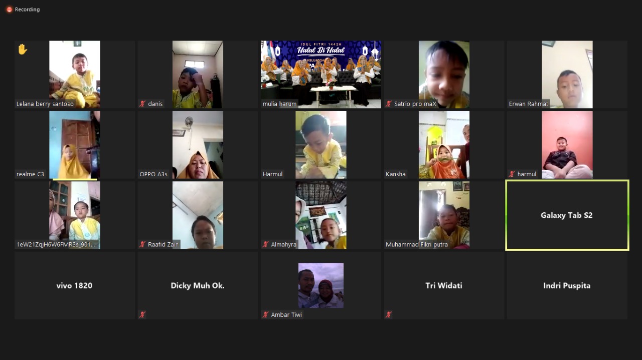 KBTK Interaktif Harum Mulia menggelar acara halal bihalal secara virtual menggunakan aplikasi Zoom, seluruh staf, guru dan orang tua siswa KBTK Interaktif Harum Mulia ikut serta menghadiri silaturahmi dalam bentuk virtual tersebut.