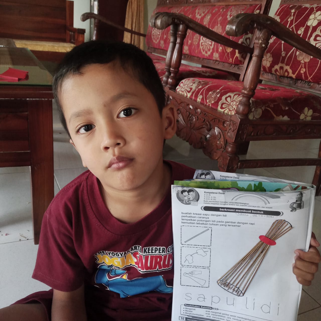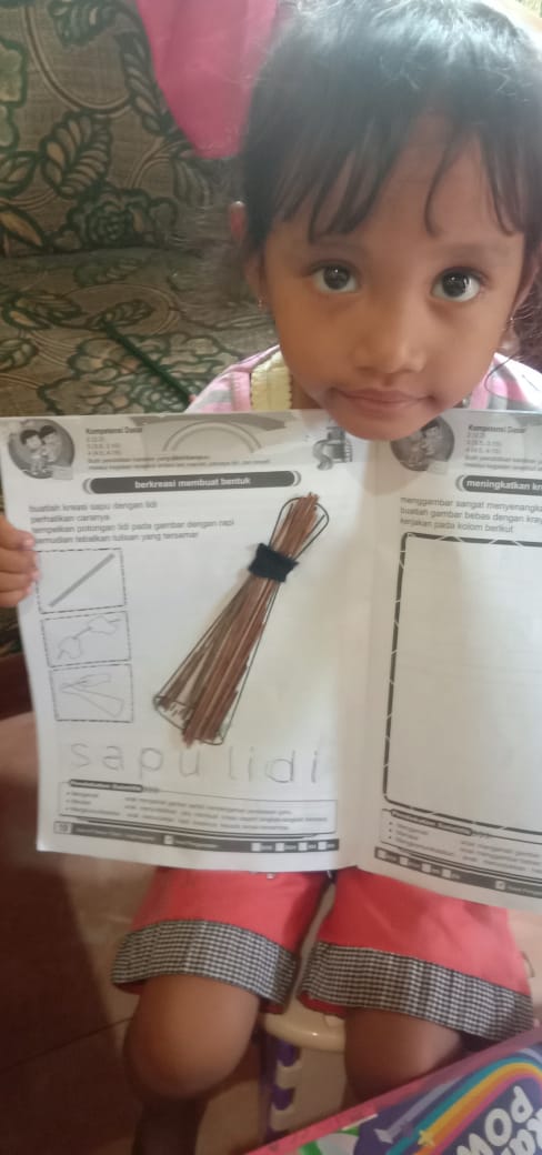 Selasa (2/11/21) Kreatifitas Membuat Kolase dari Potongan Sapu Lidi oleh murid TK Interaktif Harum Mulia.